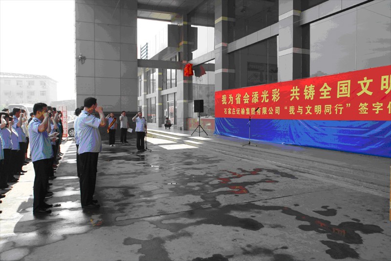 5月19日上午,石家莊運輸集團有限公司‘我與文明同行’簽字儀式,在客運總站站前廣場隆重舉行。